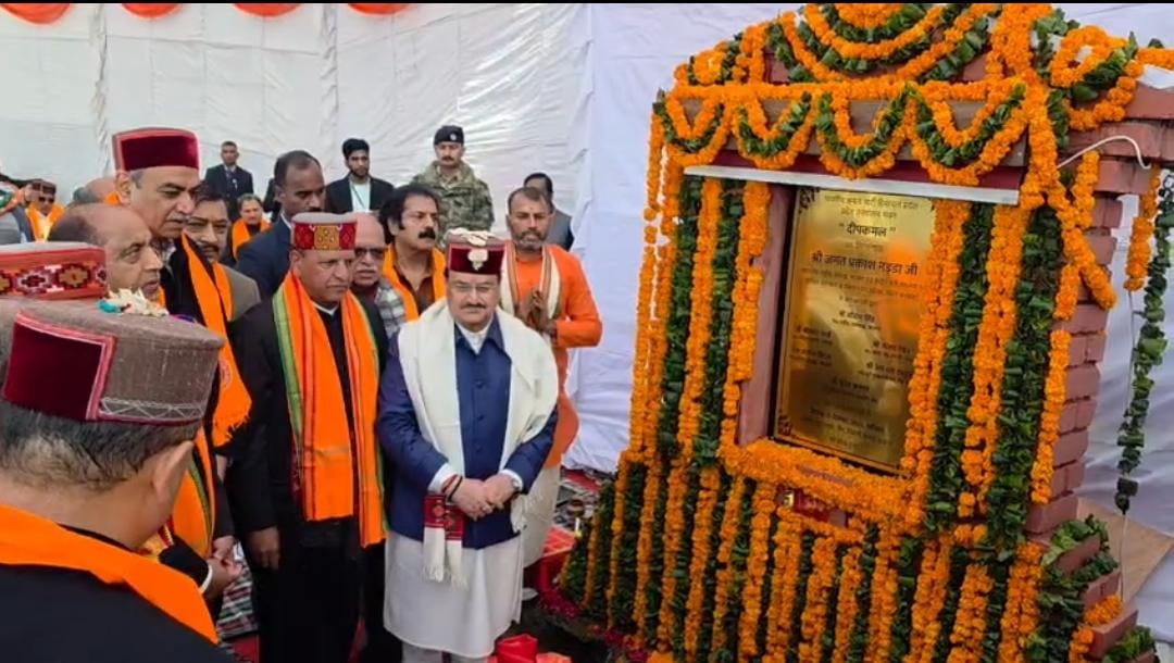 The ceremony was held near DAV School on Airport Road, where Nadda took part in a traditional prayer ritual lasting around 45 minutes, accompanied by Vedic chants. He later unveiled the foundation plaque for the proposed building.