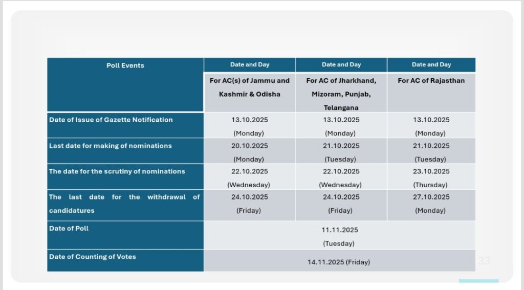 The announcement came after a detailed two-day review of the state’s election preparedness. Chief Election Commissioner along with Election Commissioners Sukhbir Singh Sandhu and Vivek Joshi, held extensive meetings in Patna with top officials and law enforcement agencies.