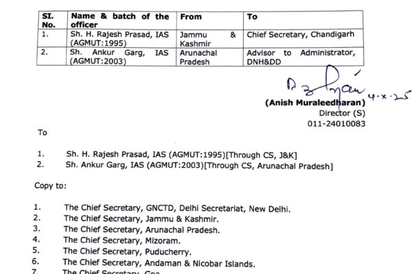 The North News Chandigarh, October 4 The Ministry of Home Affairs (MHA) on Saturday appointed senior IAS officer H Rajesh Prasad as the new Chief…