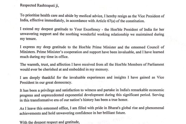 The North News New Delhi, July 21 In a surprise move, Vice-President, Jagdeep Dhankhar, has resigned from his post with immediate effect, citing medical advice…