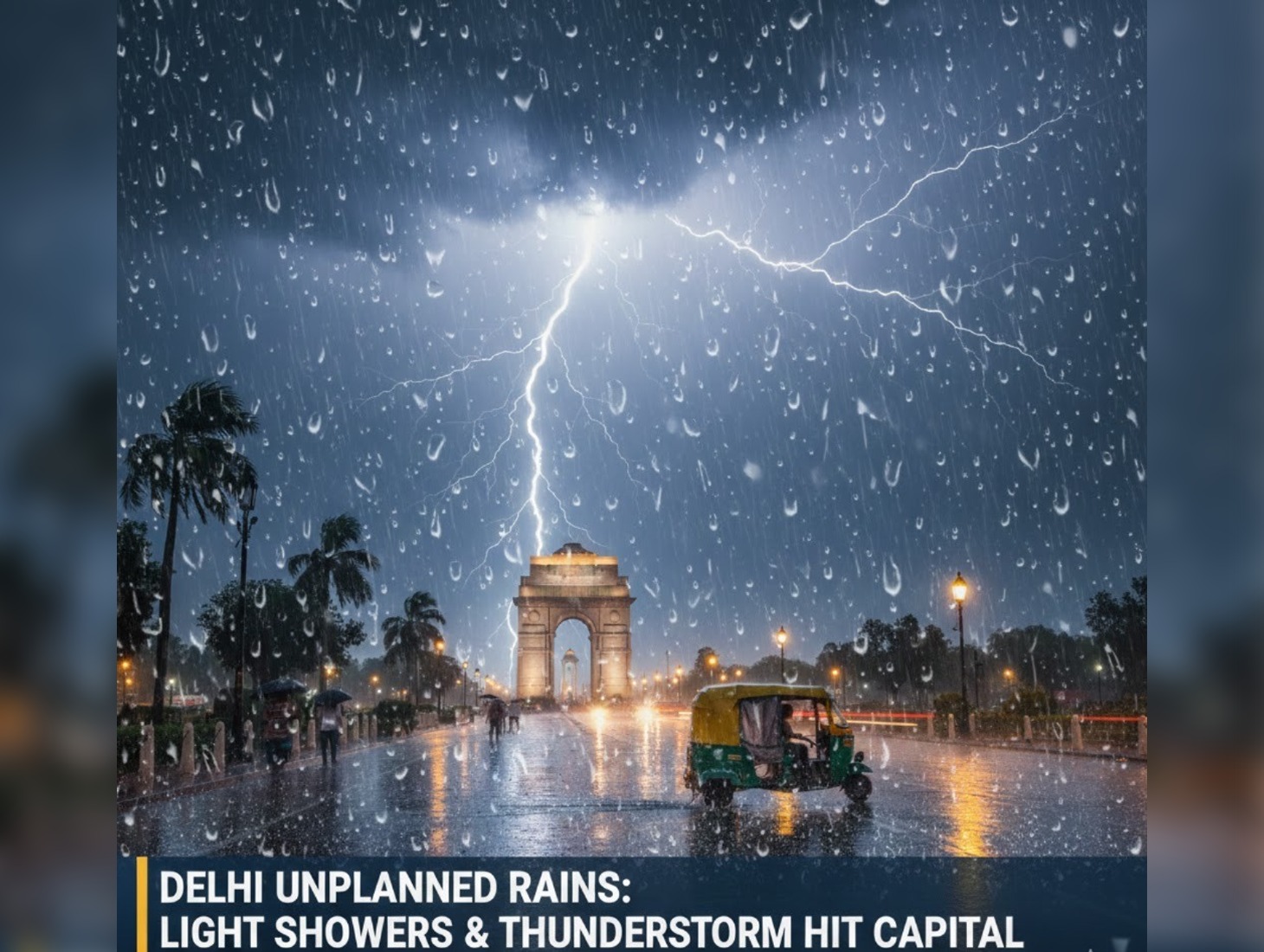 One or two spells of light rain accompanied by thunderstorms, lightning and gusty winds of 30-40 kmph during the early morning to forenoon hours are expected.
